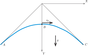 \(\displaystyle Y= \frac{h}{2\sqrt2}+\frac{g}{2v_0^2} X^2. \)
