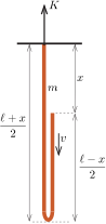 \(\displaystyle K-mg\,\frac{\ell+x}{2\ell}-K^*=0,\)