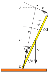 \(\displaystyle G\,\frac{\ell}{2}\sin\varphi-F\ell=0.\)