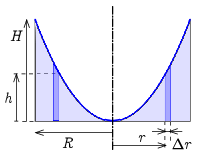\(\displaystyle h=\frac{H}{R^2}r^2,\)