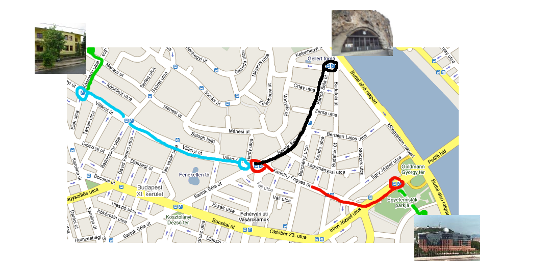 Megközelítés a Szent Gellért Sziklatemplomtól: 18, 19, 47, v. 49-es villamossal a Móricz Zs. körtérig, onnan a 61-es villamossal a "Pető Intézet, Villányi utca" megállóig, majd gyalog a Késmárki utcán a Ménesi út felé.