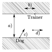 c) the constant velocity of the dog (in \(\displaystyle \rm\frac{m}{s}\)).