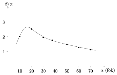 A crucial point in the completion of the measurement is the selection of the sliding surface. Most competitors chose a smooth surface. In the velocity measurement they had to take friction into account. Jurányi Zsófia (12th form student of Leöwey Klára Secondary Grammar School, Pécs) carried out her measurements on a panel board oiled with co-oking oil. She stated that on a board like that friction is negligibly small. Geresdi Attila (11th form student of Árpád Fejedelem Secondary Grammar School, Pécs) made his experiments on a 1 m2 air-cushioned table. The competitors usually used rulers and bevels for measuring the angles, but there were other methods as well: Sükösd Zsuzsanna (7th form student of Orsolya Rendi Szent Angéla Elementary and Secondary Grammar School, Budapest,) used `chequered' floor-plates as a co-ordinate system to define the position and the motion of the puck. Almost all the competitors got a result where the reflection angle was greater than the angle of incidence, but the difference was small and decreased while approaching the perpendicular direction. This was demonstrated by the graph drawn by Szilágyi Péter (9th form student of Kossuth L. Secondary Grammar School, Debrecen) containing the data for 3 different velocities (Figure 3). Nagy Ádám plotted the ratio of the reflection and incidence angles as a function of the incidence angle (Figure 4).