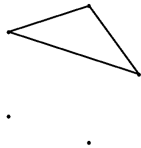 b) Ha az öt pont fokait nemcsökkenő nagyság szerint összeadjuk, akkor a következő lehetőségek adódnak (egy pont foka legfeljebb \(\displaystyle 3\)): három él esetén összegük \(\displaystyle 6=0+0+0+3+3\); amely nem egyszerű gráf, illetve \(\displaystyle 6=0+0+1+2+3\); ez sem egyszerű gráf. Az ezután következő esetekben esetleg több gráf is rajzolható, megvizsgálva őket, kizárólag az alábbiak lesznek jók, azaz egyszerű gráfok: