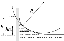 a vízfelület görbületi sugara az emelkedési magasság felénél (a falra