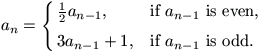 F. 3258. The first term of a sequence (an) is a positive integer. The subsequent terms of the squence are defined recursively by the rule
