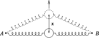 a) Mekkora erő hat a testre, ha az AB egyenesre merőlegesen x távolsággal kitérítjük? Hogyan közelíthető ez az erő kis kitérések esetén?