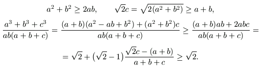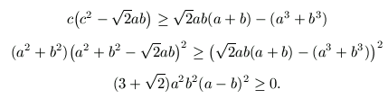 1. megoldásvázlat. Szorozzunk be a nevezővel, és rendezzük a baloldalra azokat a tagokat, amelyekben c szerepel; emeljünk négyzetre, és helyettesísünk be c2 helyére a2+b2-et: