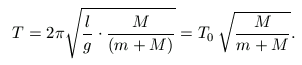 P. 3269. Könnyen mozgó, M tömegű kiskocsira fonálingát függesztettünk. Az ingatest tömege m, a fonál hossza l. A kocsit rögzítve az ingát kicsit kitérítjük, majd magára hagyjuk. A lengésidő megmérése után megismételjük a kísérletet úgy is, hogy a kiskocsit nem rögzítjük. Hogyan változik az inga lengésideje? (4 pont)