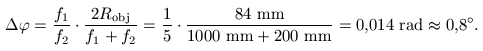P. 3271. Egy 5-szörös nagyítású Kepler-távcső objektívjének átmérője 84 mm, fókusztávolsága 1 m, az okulár átmérője 12 mm. Legfeljebb mekkora látószögben levő csillagokat lehet ezzel a távcsővel egyszerre látni? (5 pont)