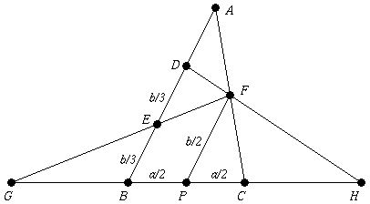A párhuzamos szelők tételéből GB : GP = BE : PF = 2 : 3 és HP : HB = PF : BD = 3 : 4, ezekből GB=HC=a.
