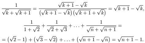 Megoldásvázlat. A nevezőket gyöktelenítve