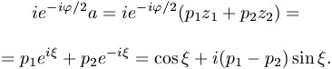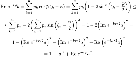 Az előbbieket a b1 és b2 számokra alkalmazva, léteznek olyan x1, y2, y3, y4 nemnegatív valós számok és egységnyi abszolút értékű z1, z2, z3, z4 komplex számok, amelyekre x1+x2=x3+x4=1, x1z1+x2z2=x3z3+x4z4=a, x1z12+x2z22=b1, végül x3z32+x4z42=b2. Ugyanezekkel a z1, z2, z3, z4 számokkkal és a p1=q1x1, p2=q1x2, p3=q2x3, p4=q2x4 választással
