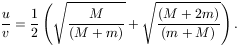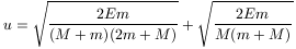 Megoldásvázlat. Ha a m tömeg eljut a körív tetejére, ott a sebessége újra vízszintes, a folyamatot mint egy síma ütközést foghatjuk fel, melyben az impulzus megmarad, de a mozgási energiából 2mRg "elvész". Ennek megfelelően a m és a M tömegek sebessége az ütközés után rendre