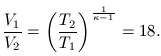 P. 3336. A dízel-motorban a gázt adiabatikusan összenyomják. Ha a kezdeti hőmérséklet 27 oC, az összenyomás utáni hőmérséklet 681 oC lesz. Tegyük fel, hogy a gáz kétatomos molekulákból álló ideális gáznak tekinthető. Mekkora a kezdeti és az összenyomás utáni térfogat aránya (a sűrítési viszony, más néven kompresszió)? (4 pont)