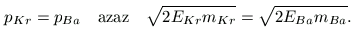 Az energia-mérleg szerint a Kr és a Ba mag együttes mozgási energiája
