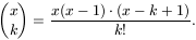 binomiális együtthatókat valós x-ekre is kiterjesztjük a