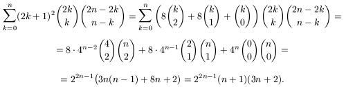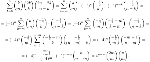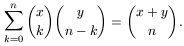 (Utóbbi részletes bizonyítását lásd pl. R. L. Graham -- D. E. Knuth -- O. Patashnik: Konkrét matematika, 169. oldal. Rögzített n esetén (1) két oldala egy-egy polinom. Ha ezek értéke tetszőleges pozitív egész x,y esetén megegyezik, akkor a két polinom azonos. Pozitív egész x,y esetén viszont a bizonyítás egyszerű kombinatorikus okoskodással elvégezhető.)