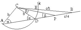 Megoldás. Rajzoljunk egy C középponttú, b sugarú k kört. Messe ez AB-t D-ben, CB-t pedig E-ben.