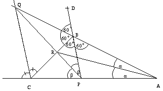 B. 3388. Az ABC háromszög B csúcsánál 120o-os szög van. Ennek szögfelezője P-ben metszi az AC oldalt. A C csúcsból induló külső szögfelező Q-ban metszi az AB oldal egyenesét, a PQ szakasz pedig R-ben metszi a BC oldalt. Mekkora a PRA szög? (5 pont)