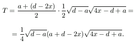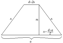 Megoldás. A trapéz csak akkor létezik, ha d>a, mivel két pont között a legrövidebb út az egyenes szakasz. Jelölje x a trapéz szárainak hosszát. Az a-val párhuzamos oldal ekkor d-2x hosszúságú (0<x<d/2).