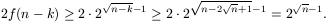 Ha a sorozat második felében is legalább n-k korongot elmozdítunk, akkor mindkét fél sorozat legalább f(n-k) lépésből áll, vagyis a lépések száma legalább