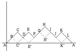 Tehát egy ``lehajtás'' sem változtat az eredményen. Ugyanígy az sem, ha egy völgyszámot hajtunk föl. Föl- és lehajtásokkal pedig véges sok lépésben elérhető az az állapot, amikor mindig 1-gyel nőnek, majd 1-gyel csökkennek a szomszédos csúcsokra írt számok (természetesen az A csúcsra írt számot nem változtatjuk meg). Ekkor az A csúcsra írt számot m-mel jelölve a keresett különbség valóban n.(m+1)-nm=n.