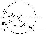 Vegyünk egy, a kép síkjára merőleges síkmetszetet. Jelölje A és B a metszeten a kép két szélét, P pedig azt a pontot, ahonnan nézzük. Rajzoljuk meg az ABP köré írható kört. Ennek középpontját O-val jelölve a kerületi- középponti szögek tétele miatt \(\displaystyle \alpha={{AOB\measuredangle}\over2}\). Tehát \(\displaystyle alpha\) akkor a lehető legnagyobb, ha \(\displaystyle AOB\measuredangle\) a lehető legnagyobb, azaz, ha O a lehető legközelebb van AB egyeneséhez, de AO nem kisebb, mint O és CP egyenes távolsága.