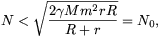 (ahol r a Föld-pálya sugara,) addig a<(R+r)/2, azaz az N-nel jellemzett pálya metszi a Földét, míg az N0-hoz tartozó pálya éppen érinti azt. Ezért csak a 0<N
