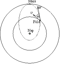 A legyen a szonda keringési ideje T, a Marsé TM. A szonda pont T/2 ideig repül, enyivel kell a kilövéskor a Marsnak a talákozási ponthoz (A Földdel átellenes ponthoz) képest lemaradni. Eszerint a kilövéskor a Föld-Nap-Mars szög