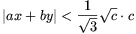 \(\displaystyle \le{\big|a(x_0-u)+b(y_0-v)\big|+\big|a(x_1-u)+b(y_1-v)\big|\over c}<{2\over\sqrt3}\sqrt{c}.\)