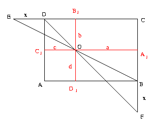 ab=d(x+c). \(\displaystyle FA_1O\triangle\sim OB_1D\triangle\), így \(\displaystyle {b\over c}={{d+x}\over a}\), amiből ab=(d+x)c. Ebből következik, hogy d(x+c)=(d+x)c, tehát dx=cx, és mivel \(\displaystyle x\neq0\), ezért c=d. Így az AD1OC1 négyszög négyzet, így átlója, OA, felezi az A csúcsnál levő szöget.