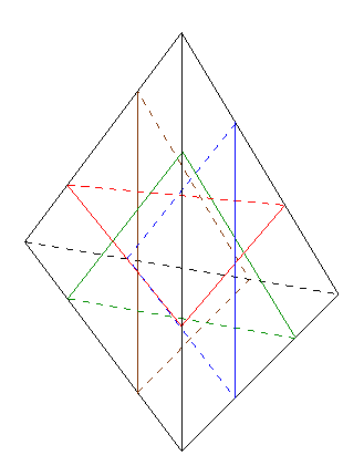 lapsíkjai három típusú kis tetraédert határoznak meg, amelyek a síkok