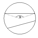 A területek egyenlőségéből következik, hogy a húrok által levágott két körszelet területe a kör területének harmadrésze, tehát \(\displaystyle {1\over3}r^2\pi={1\over2}r^2(\overset\frown\to\alpha-\sin\alpha)\), amiből \(\displaystyle \sin\alpha=\overset\frown\to\alpha-{2\over3}\pi\). A két oldalt ábrázolva látható, hogy az egyenletnek egyetlen megoldása van,