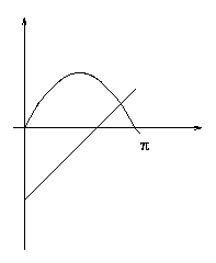 méghozzá \(\displaystyle {2\over3}\pi\) és \(\displaystyle pi\) között, tehát a megoldást x-szel jelölve 2,09<x<3,15. Helyettesítsünk be először (próbaképpen) 2,5-et. Erre az értékre azt kapjuk, hogy \(\displaystyle \sin2,5=0,597\)0,406=2,5-{2\over3\pi}">,