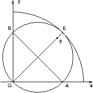 Megoldás. Az AB átmérőjű félkörív a szivacs. Ha A az x tengelyen, B az y tengelyen mozog, akkor az AB átmérőjű kör átmegy O-n. Ezért az O középpontú, 20 cm sugarú negyedkörön kívüli pontok nem érhetők el a szivaccsal. Az O középpontú, 10 cm sugarú negyedkör belső pontjai lefedhetők az x, ill. y tengelyen nyugvó félkörökkel. Ha a P pont a két negyedkör között van, akkor azzal a félkörrel fedhető le O, amelyhez tartozó teljes kör egyik átmérője tartalmazza OP-t.