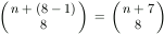 Ha minden számjegy 9-es, akkor a számjegyek összege 9n. Ennél 8-cal kisebb számot úgy érhetünk el, ha bizonyos számjegyeket lecsökkentünk, de úgy, hogy a csökkentések összege 8 legyen. Ezt a feladatot tekinthetjük úgy is, mintha az n darab 9-esből kellene kiválasztani 8-at úgy, hogy egy számjegy többször is szerepelhet, és egy számjegy kiválasztása annak 1-gyel való csökkentését jelenti. Ez n elem 8-adrendű ismétléses kombinációja, azaz