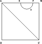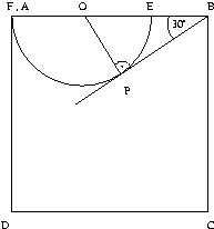 B. 3465. Az egységoldalú ABCD négyzet AB oldalán lévő E és az F pontokra \(\displaystyle AE={1\over n}\) és \(\displaystyle BF={1\over m}\), ahol m és n pozitív egész számok. A B pontból kiinduló, AB-vel 30o-os szöget bezáró egyenes érinti az EF, mint átmérő fölé, a négyzet belsejébe rajzolt félkört. Határozzuk meg az m és n értékét. Van-e a kapott számpárok között olyan, amely mellett a félkör érinti az AC átlót is? (3 pont)