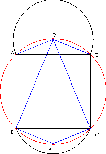 ez csak úgy lehet, ha P rajta van a négyzet köré írt körön. Ha rajta van, akkor $, tehát a köré írt kör bármely pontja jó (A-t, B-t, C-t és D-t kivéve).