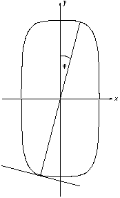 Megjegyzés. Érdekes, hogy a ,,csúcsára'' állított szuperellipszis tetszőlegesen nagy b/a lapultsági arány mellett stabil egyensúlyi helyzetben van, magától nem borul fel, hiszen a kritikus \(\displaystyle phi\) szög nem nulla (jóllehet b/a növelésével \(\displaystyle phi\) egyre kisebbé válik)! Ezzel a tulajdonsággal nem csak a feladatban szereplő alakú test, hanem minden (x/a)n+(y/b)n=1 egyenlettel leírt ,,hengeres test'' rendelkezik, amennyiben n>2.