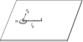 P. 3440. Légpárnás asztalon a kezdetben nyújtatlan, l0 hosszúságú húzó-nyomó rugó egyik vége rögzített, a másik végéhez egy m tömegű kis korongot erősítünk. Meglökjük a korongot a rugó hosszára merőlegesen, v0 kezdősebességgel. A kialakuló mozgás során a rugó legnagyobb megnyúlása \(\displaystyle Delta\)l=l0/10. Mekkora a rugóállandó? Vázoljuk fel a korong középpontjának pályagörbéjét!