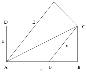Az ABCD téglalapban AB=a, AD=b, a rombusz oldalát jelölje x.
