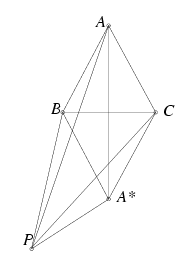 \(\displaystyle \overline{PA}^2=\overline{PA^*}^2+\overline{AA^*}^2-2\overline{PA^*}\cdot\overline{AA^*}\cos PA^*A\angle=x^2+3-2x\sqrt{3}\cos PA^*A\angle,\)