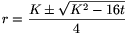 \(\displaystyle 2t=r^2\Big(\frac{K}{r}-2\Big),\) ezért