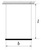M. 232. Függesszünk fel szimmetrikusan egy homogén fémrudat két erős fonállal az ábrán látható módon! Hogyan függ a kicsit megcsavart rendszer periódusideje az l és a b távolságoktól?