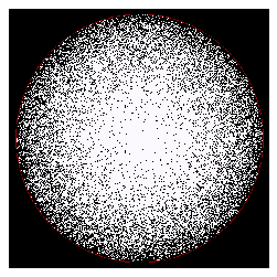 Készítsünk programot (I20.PAS, ...), amely beolvassa a fénynyaláb és szemtengely által bezárt szöget, majd kirajzolja a megvilágított gömböt pontfelhős ábrázolással úgy, hogy a határvonalát piros körrel rajzolja! (10 pont)