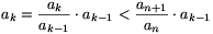 a_n}\). Ebből bebizonyítjuk, hogy \(\displaystyle {a_{n+1}\over a_n}<{a_{n+2}\over a_{n+1}}\),