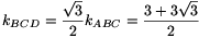 t_{BCD}}\over{k_{BCD}}}={{3\sqrt{3}}\over4}/{{3+3\sqrt{3}}\over2}={{3-\sqrt{3}}\over4}\). Végül