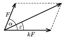 P. 3553. Összegezzük az F és kF nagyságú erőket, melyek egymással \(\displaystyle \alpha\) szöget zárnak be (k\(\displaystyle \ge\)1). Az \(\displaystyle \alpha\) szög mely értékénél lesz az eredőnek a kF összetevővel alkotott \(\displaystyle \varepsilon\) szöge a legnagyobb? Mekkora ez a szög?