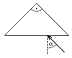 P. 3557. Derékszögű, szimmetrikus üvegprizma átfogójára monokromatikus fénysugár esik a levegőből. Az \(\displaystyle \alpha\) beesési szöget válasszuk meg úgy, hogy a másik két lapon teljes visszaverődés jöjjön létre (n=1,5).